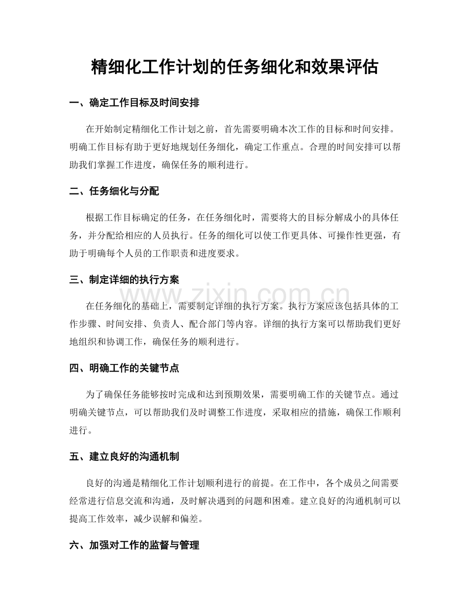 精细化工作计划的任务细化和效果评估