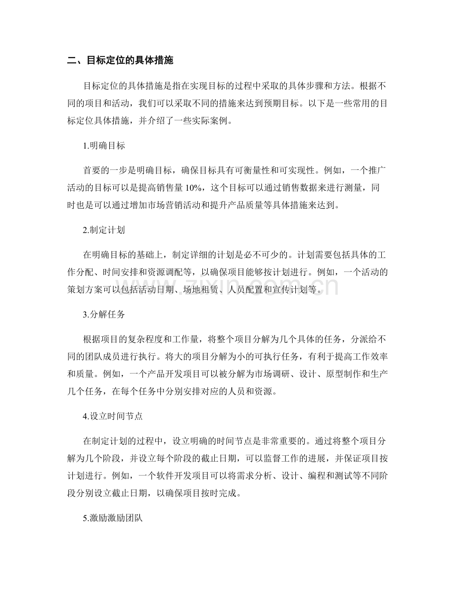 目标定位是指明确一个项目或活动的最终目标所在,以及实现这一目标需要采取的具体步骤和方法。一个明确的目标定位可以帮助我们集中注意力和资源,使得项目具有更高的效率和成功的机会。
