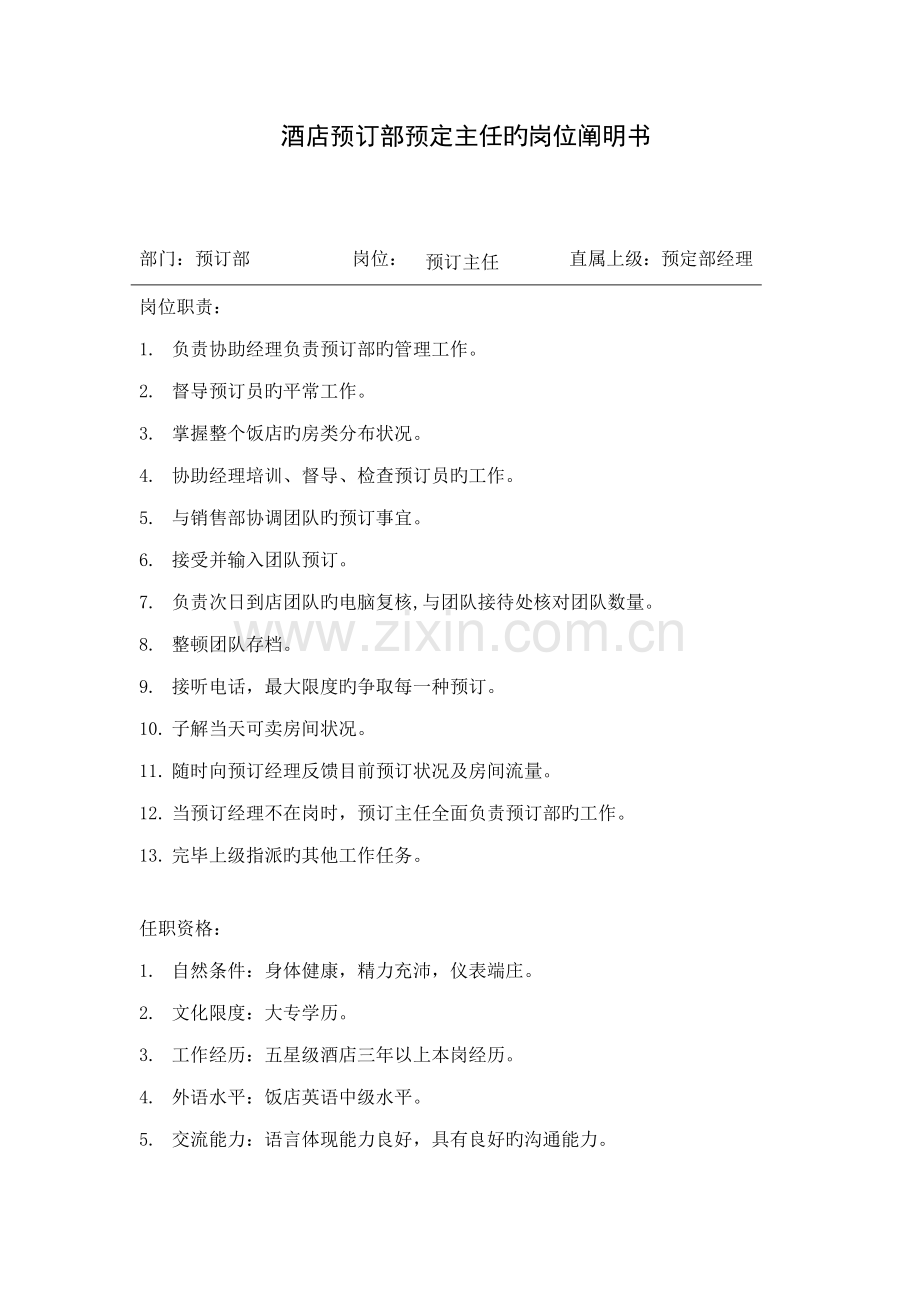12. 当预订经理不在岗时,预订主任全面负责预订部旳工作。