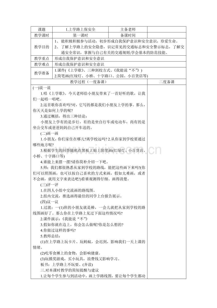 1.课件(《上学歌》、三种到校方式、《我能说“不”》)