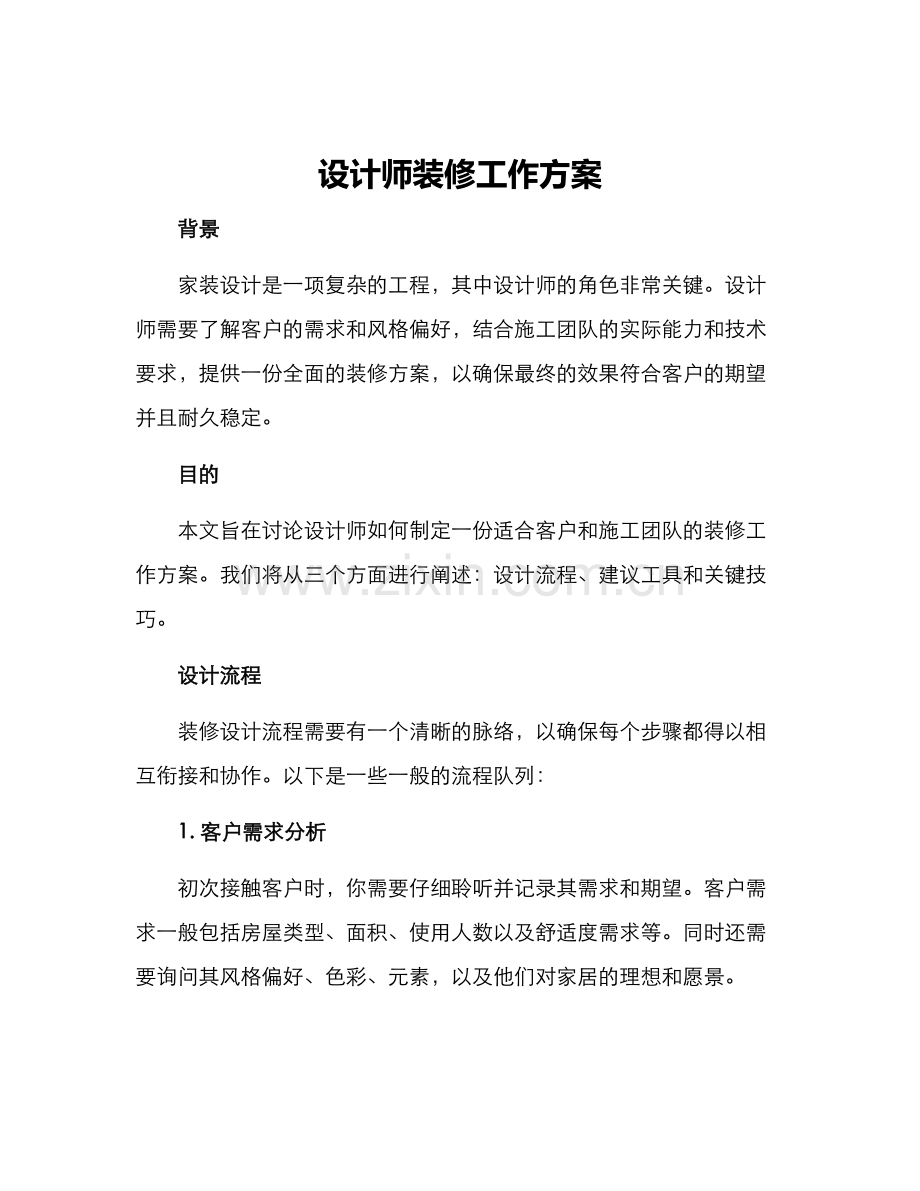 本文旨在讨论设计师如何制定一份适合客户和施工团队的装修工作方案。我们将从三个方面进行阐述:设计流程、建议工具和关键技巧。