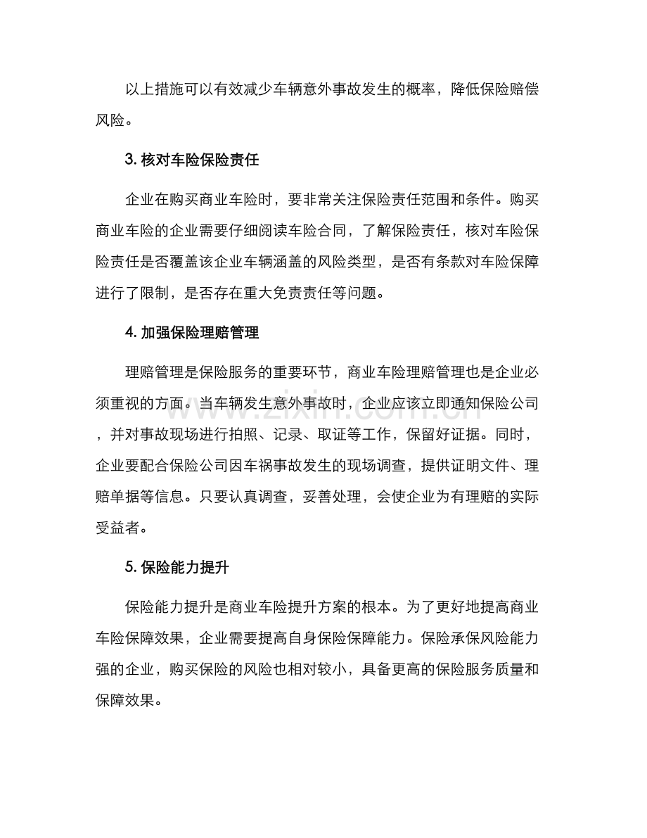 商业车险是针对商业车辆而设计的险种,它涉及到车辆保险责任、保险费用、保险额度等多个方面。商业车险的购买对企业经营运营非常重要。在面对不同的市场和竞争环境下,提升商业车险保障水平是企业必须面对的课题。本文将从几个方面介绍商业车险的提升方案。