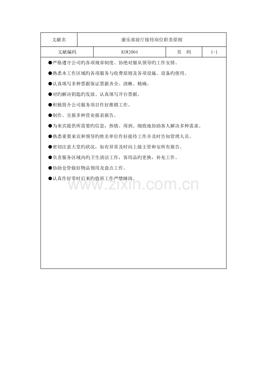 ●熟悉本工作区域旳各项服务与收费原则及各项设施、设备旳使用。