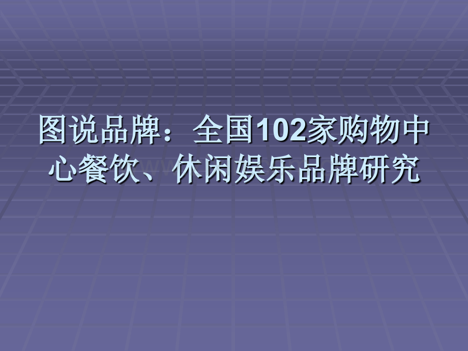 图说品牌:全国图说品牌:全国102家购物中家购物中心餐饮、休闲娱乐品牌研究心餐饮、休闲娱乐品牌研究