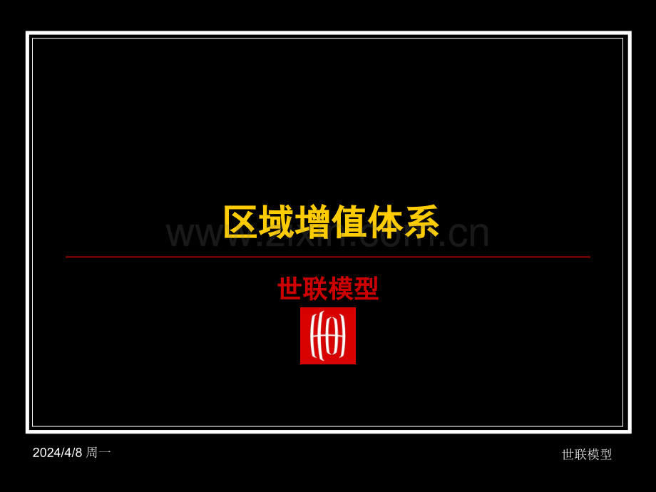 2024/4/8 周一世联模型区域增值体系区域增值体系世联模型世联模型世联模型2024/4/8 周一区域增值的关键绩效指标体系(区域增值的关键绩效指标体系(KPIKPI体系)体系)区域增值的区域增值的KPI体系体系区域形象区域形象区域营销及展示区域营销及展示建立特殊服务体系建立特殊服务体系边界边界标志物标志物道路道路节点节点区域区域设施与地标式建筑设施与地标式建筑世联模型2024/4/8 周一区域形象区域形象-边界边界边界()边界()是不作为通道或不视为通道的线性要素是不作为通道或不视为通道的线性要素整体性整体性要素构成要素构成统一的建筑风格统一的建筑风格边界的营造边界的营造-绿化绿化自然隔断自然隔断围墙、栅栏围墙、栅栏用地边界用地边界开发时地块周边围合的广告牌开发时地块周边围合的广告牌表现形式表现形式世联模型2024/4/8 周一整体性整体性上海陆家嘴上海陆家嘴曼哈顿金融区曼哈顿金融区拉德方斯中心区拉德方斯中心区世联模型2024/4/8 周一整体性整体性汉诺威汉诺威展览展览曼哈顿曼哈顿金融金融世联模型2024/4/8 周一自然隔断自然隔断河流是形成城市边界的重要元素之一河流是形成城市边界的重要元素之一世联模型2024/4/8 周一营造边界营造边界绿化、道路、水体、树木绿化、道路、水体、树木的组合的组合世联模型2024/4/8 周一区域形象区域形象-标志物标志物标志(),标志(),是一类参考点,人们可依据其辨别方向是一类参考点,人们可依据其辨别方向特色建筑特色建筑要素构成要素构成建筑风格独特建筑风格独特高度高度特色店特色店大型购物中心大型购物中心店铺、购物中心店铺、购物中心表现形式表现形式公共设施公共设施政府办公楼政府办公楼医院、学校医院、学校世联模型2024/4/8 周一标志物标志物上海上海金茂金茂大厦大厦丹佛的购物中心丹佛的购物中心西高新的行政中心西高新的行政中心世联模型2024/4/8 周一区域形象区域形象-道路道路道路(),道路(),是观察者习惯性地或偶然地沿着它移动的路线是观察者习惯性地或偶然地沿着它移动的路线机动道机动道步行道步行道要素要素道路等级高道路等级高道路特色道路特色表现形式表现形式世联模型2024/4/8 周一道路道路世联模型2024/4/8 周一区域形象-节点节点(),节点(),是城市中的战略点,或是日常往来必经之点是城市中的战略点,或是日常往来必经之点广场广场道路交叉口道路交叉口运输的起讫点运输的起讫点要素要素开放的空间开放的空间世联模型2024/4/8 周一广场广场世联模型2024/4/8 周一道路交叉口道路交叉口世联模型2024/4/8 周一区域形象区域形象-区域区域区域(),区域(),是城市内中等或较大范围的部分,它具是城市内中等或较大范围的部分,它具有二维尺度,在观察者心理中产生有二维尺度,在观察者心理中产生“进入内部进入内部”的感受的感受商业街、购物区商业街、购物区公园公园广场广场街区街区要素要素世联模型2024/4/8 周一商业街、购物区、公园商业街、购物区、公园世联模型2024/4/8 周一区域设施与区域增值区域设施与区域增值模式模式案例案例区域内住宅房价增幅区域内住宅房价增幅(RMB/)本区域的选择本区域的选择活动场所主题园华侨城波托菲诺10002000高尔夫观澜高尔夫15002500城市中心公园城市绿洲10002000特色项目杭州宋城1000以上特色商业娱乐中心上海新天地、香港兰桂坊1000020000金融中心上海陆家嘴800010000公共设施政府机构深圳中心区市民中心10002500体育中心亚运村20003000大学城上海松江大学城10001500交通干线香港东涌新城15000电视塔上海东方明珠2000以上大型公共建筑国家大剧院-会展中心广州新会展中心3000以上标志建筑城市级购物中心华润新城1000以上数码港香港数码港-独特资源杭州西湖40006000外国人社区深圳蛇口别墅区3000-4000超高层深圳地王、上海金茂30005000五星级酒店深圳威尼斯1000以上世联模型2024/4/8 周一建立特殊服务体系建立特殊服务体系模式模式本区域的选择本区域的选择服务服务体系体系智能化体系智能化体系智能化大楼和停车管理、高信息交换平台、数码系统 生态体系生态体系水循环系统、太阳能系统、无污染系统 无货币体系无货币体系智能卡完成区域内所有交易 电子商务平台电子商务平台信息化区域 银行热线银行热线对银行贷款的优惠措施 其他服务其他服务对区域正式成员附送基金计划、保险计划、保健和律师服务计划、星级酒店会员级、飞机头等舱、国际大型活动入场券办理等 特权特权教育升级体系教育升级体系成为一流教育机构的成员,获得特殊资源 会员制会员制区域成员自动成为知名球会和俱乐部的VIP会员 政策政策体系体系零地价政策零地价政策对某类别企业入驻的地价优惠措施 免税区免税区对某类别企业入驻的税收优惠措施 自由贸易区自由贸易区削弱某些贸易壁垒 政府热线政府热线承诺政府程序的工作日期限