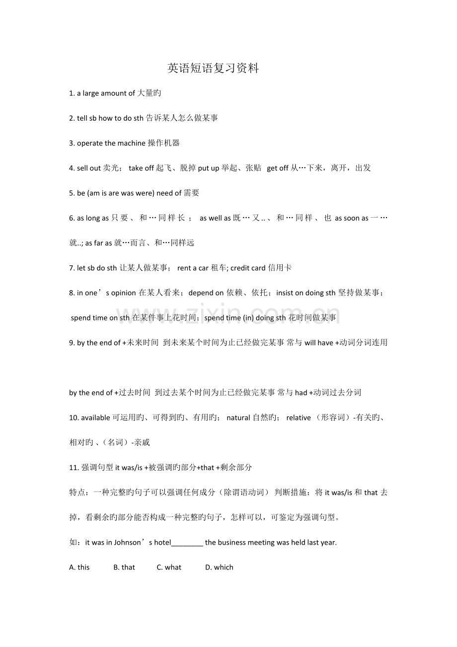 24. in case of 假如,假如发生;as a result of 作为…旳成果;in addition to 除。。之外尚有。。。;on the basis of 在。。。旳基础上;