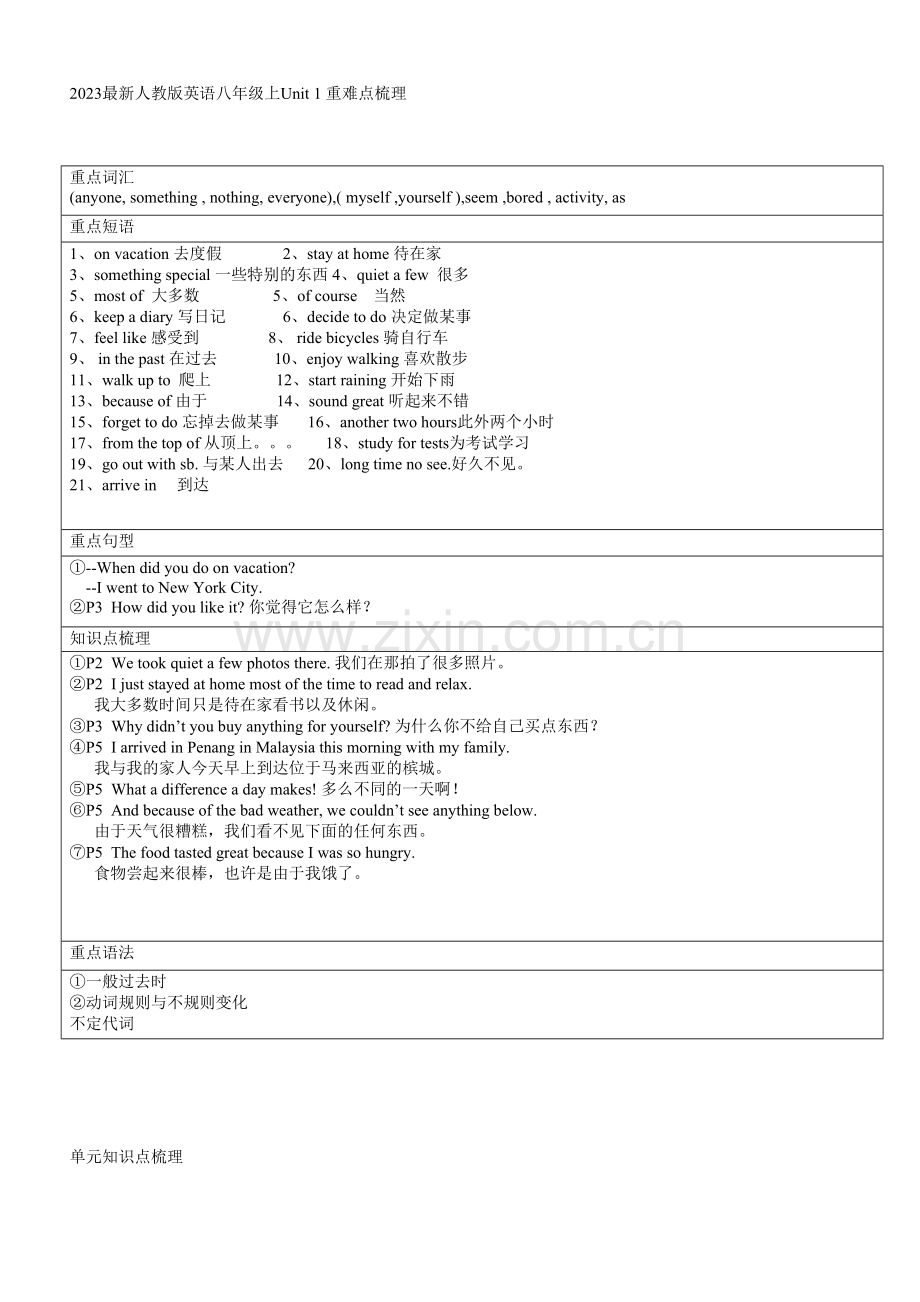 2023最新人教版英语八年级上Unit 1 重难点梳理