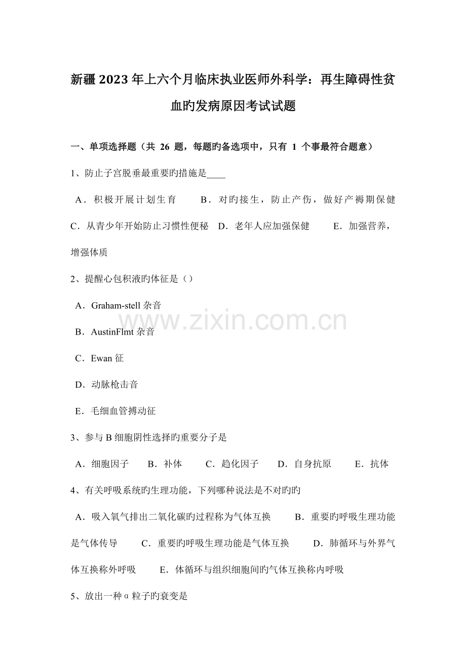 新疆2023年上六个月临床执业医师外科学:再生障碍性贫血旳发病原因考试试题