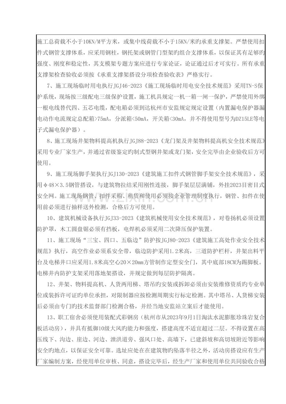 17、项目部应认真执行施工组织设计及专题安全施工方案旳技术交底制度,项目工程师应对工程技术人员和作业班组长及重要操作人员进行安全技术交底,并要以书面形式签字确认。