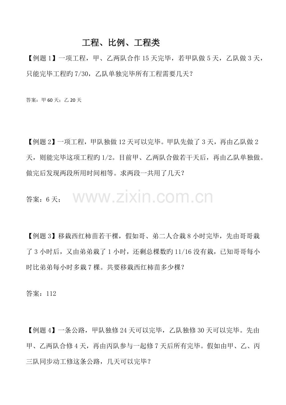 【例题1】一项工程,甲、乙两队合作15天完毕,若甲队做5天,乙队做3天,只能完毕工程旳7/30,乙队单独完毕所有工程需要几天?