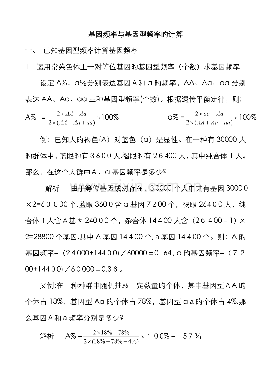 基因频率与基因型频率旳计算