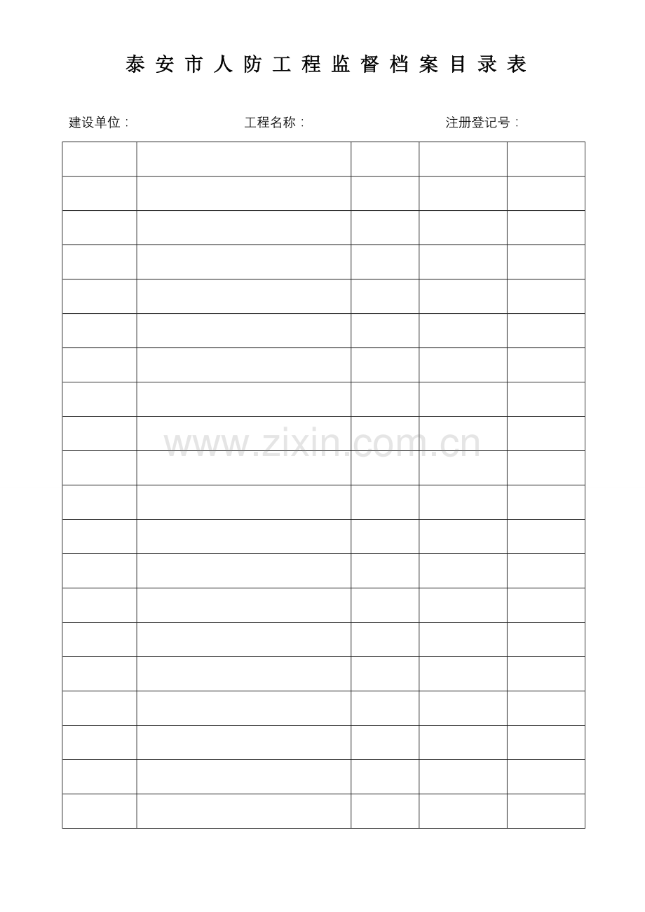 泰 安 市 人 防 工 程 监 督 档 案 目 录 表