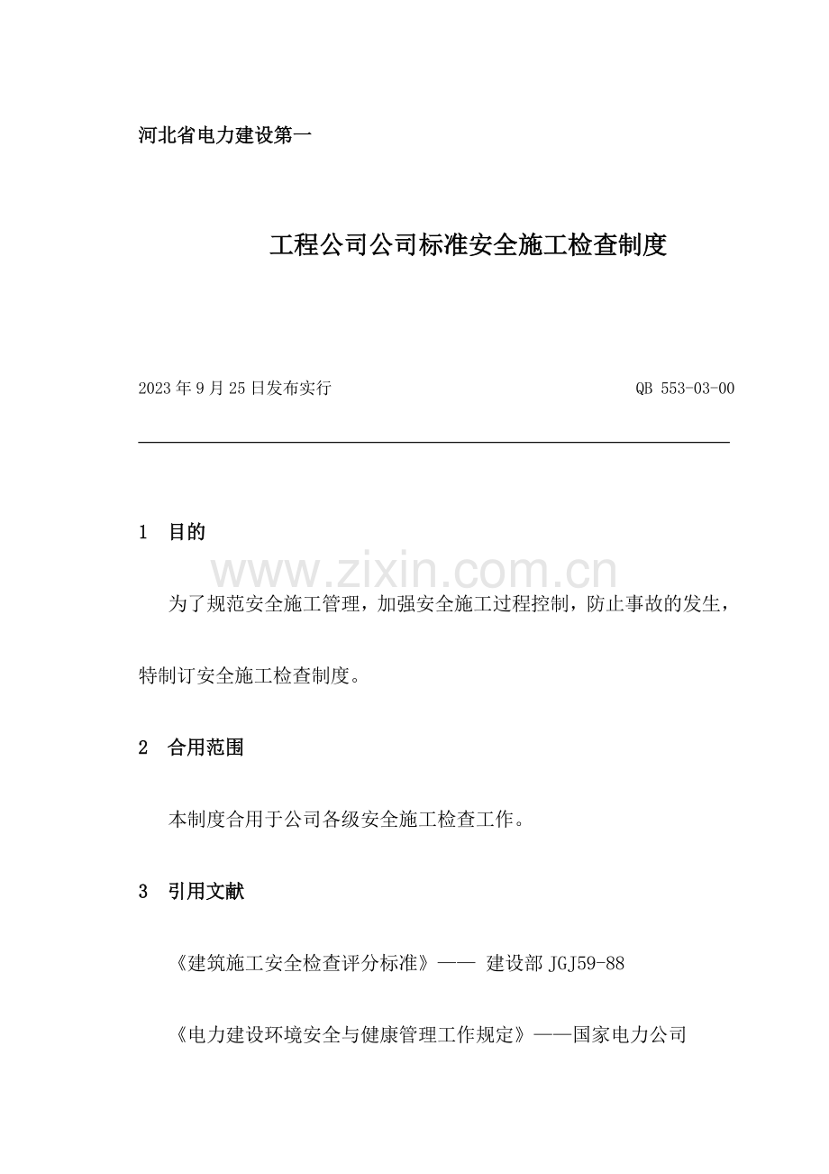 6.4 公司安全监察部依据“现场临时供用电安全检查表”对项目部现场临时供电现场临时供电管理办法 QB 553-09-00