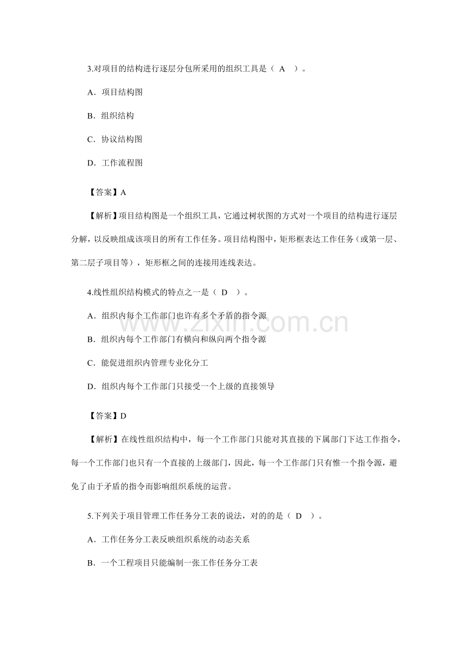 3.对项目的结构进行逐层分包所采用的组织工具是( A )。