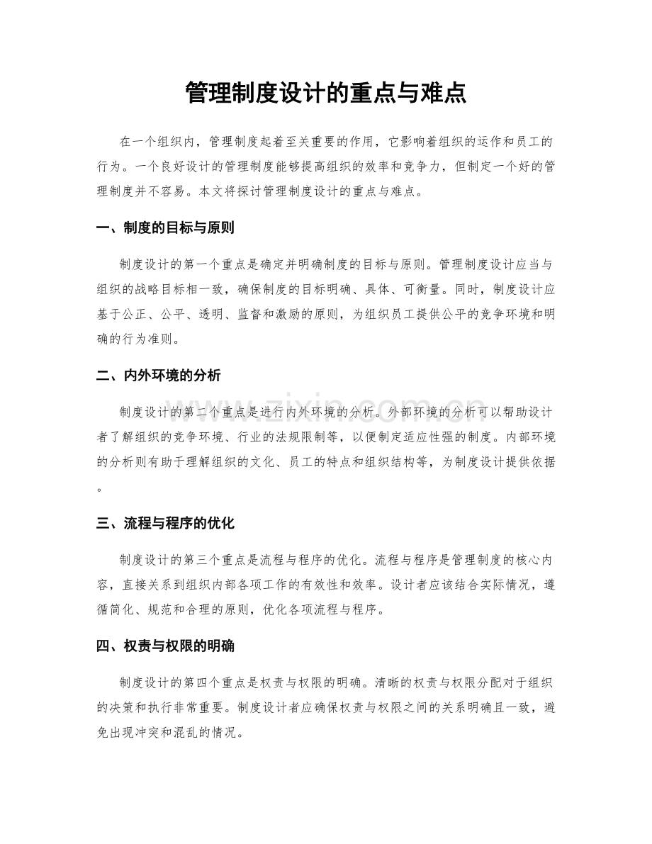 在一个组织内,管理制度起着至关重要的作用,它影响着组织的运作和员工的行为。一个良好设计的管理制度能够提高组织的效率和竞争力,但制定一个好的管理制度并不容易。本文将探讨管理制度设计的重点与难点。