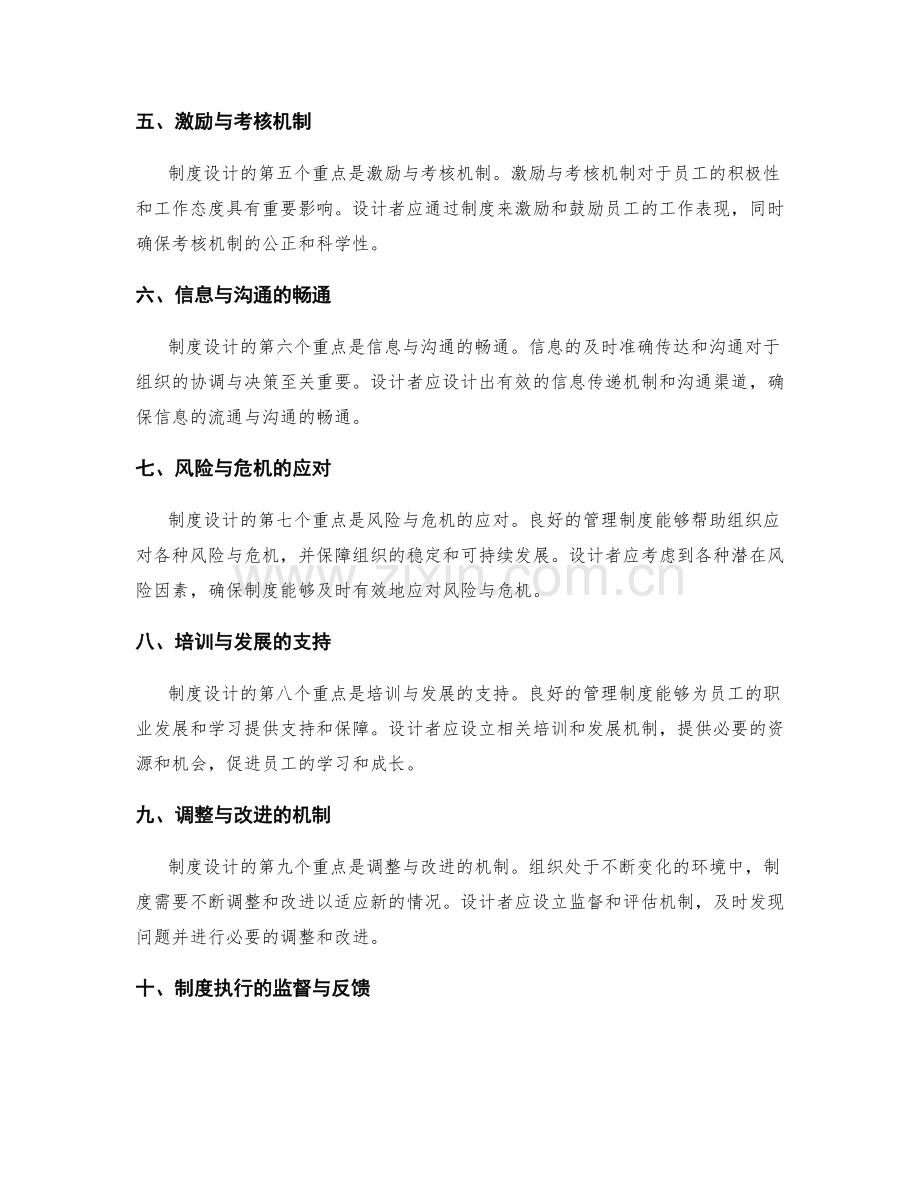 制度设计的第七个重点是风险与危机的应对。良好的管理制度能够帮助组织应对各种风险与危机,并保障组织的稳定和可持续发展。设计者应考虑到各种潜在风险因素,确保制度能够及时有效地应对风险与危机。