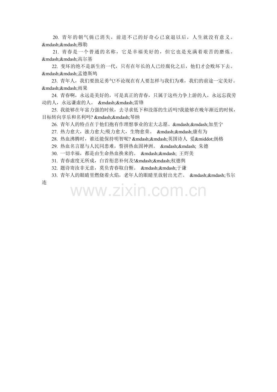21. 青春是一个普通的名称,它是幸福美好的,但它也是充满着艰苦的磨炼。 ——高尔基