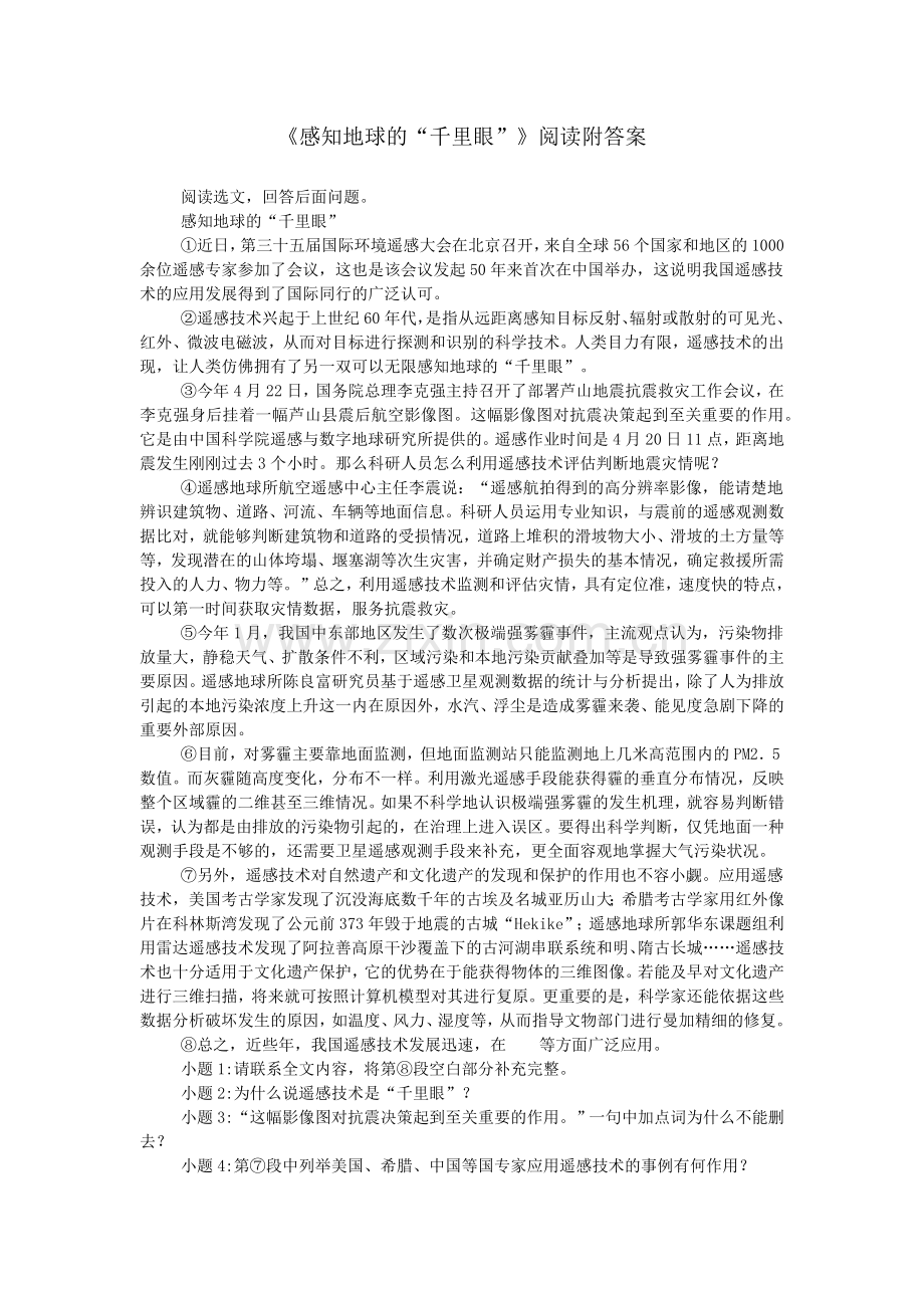 《感知地球的“千里眼”》阅读附答案