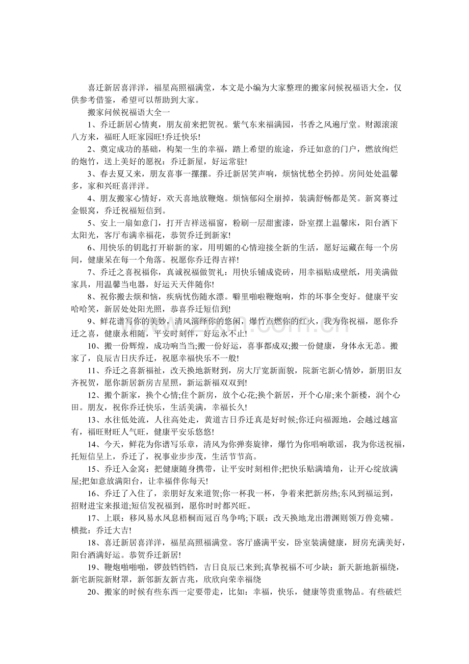 搬家问候祝福语大全一