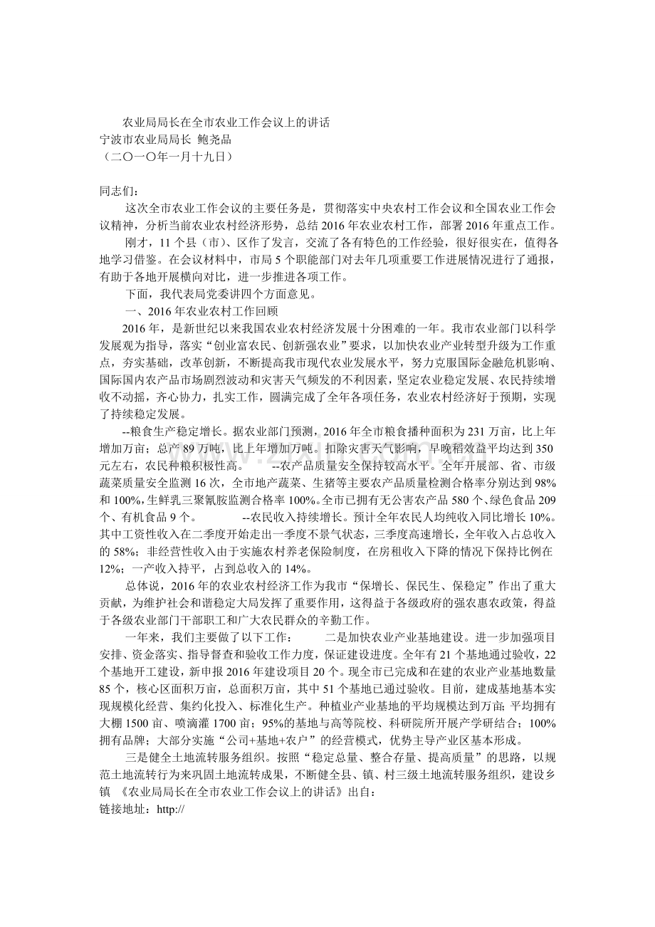 三是健全土地流转服务组织。按照“稳定总量、整合存量、提高质量”的思路,以规范土地流转行为来巩固土地流转成果,不断健全县、镇、村三级土地流转服务组织,建设乡镇 《农业局局长在全市农业工作会议上的讲话》出自: