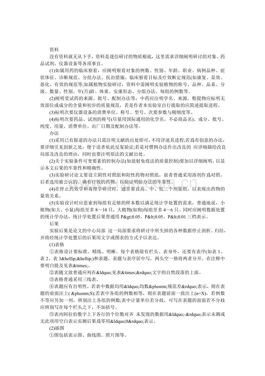 (4)药物的临床疗效研讨后果,要留意交待与药物有关的全部信息,如疗效、毒反作用及留意事项等。