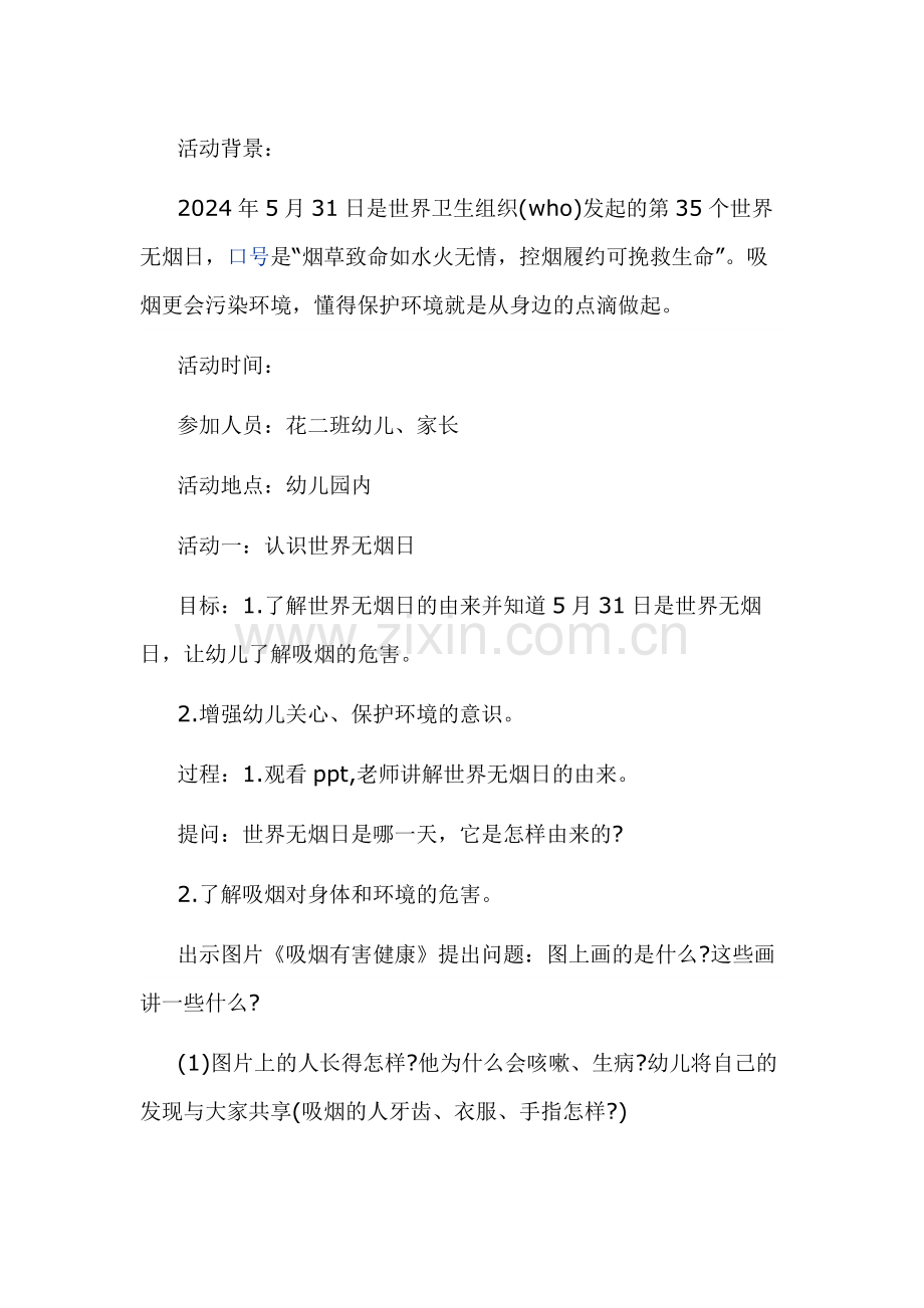 目标:1.了解世界无烟日的由来并知道5月31日是世界无烟日,让幼儿了解吸烟的危害。