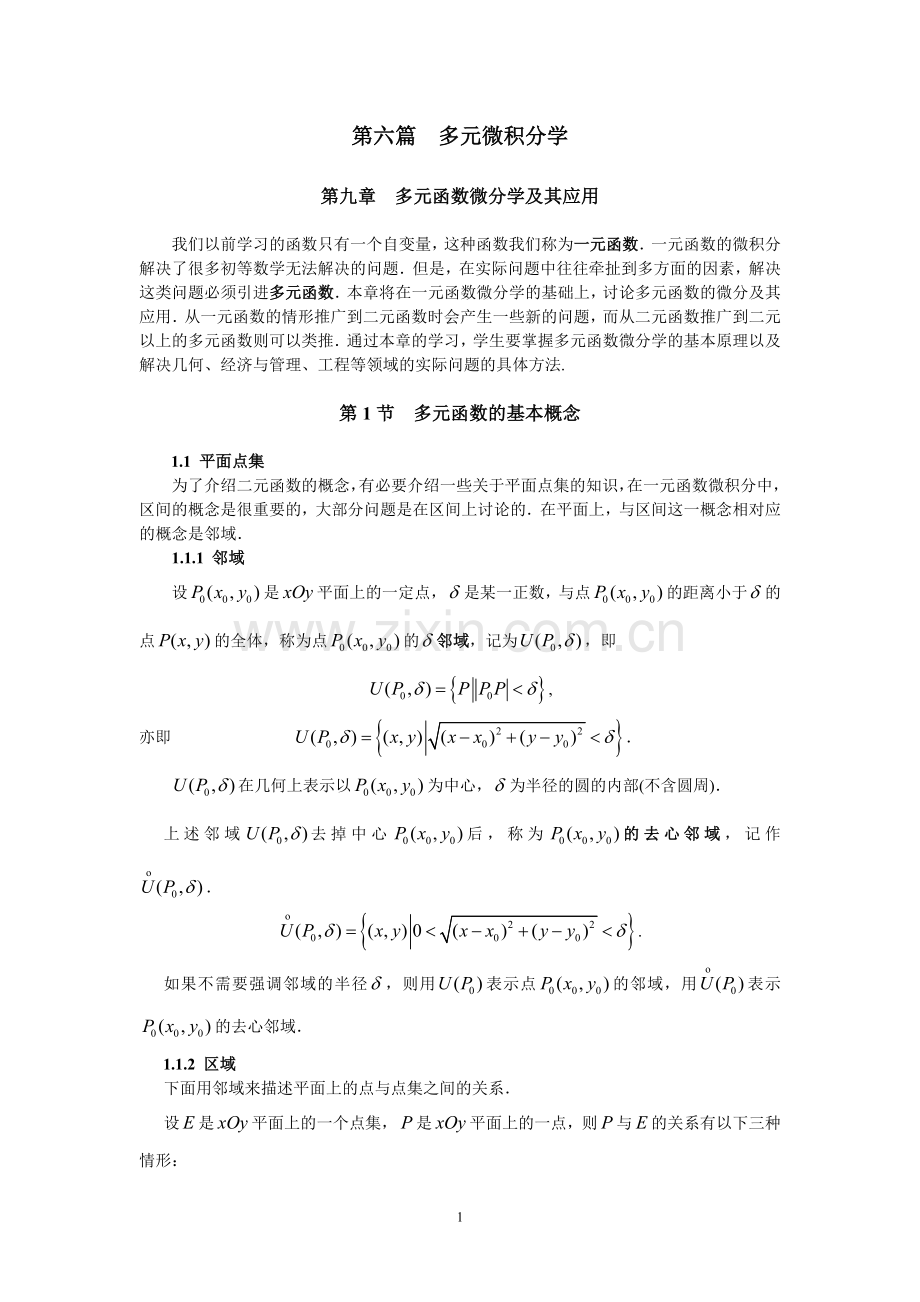 二元及二元以上的函数统称为多元函数.多元函数的概念与一元函数一样,包含对应法则和定义域这两个要素.