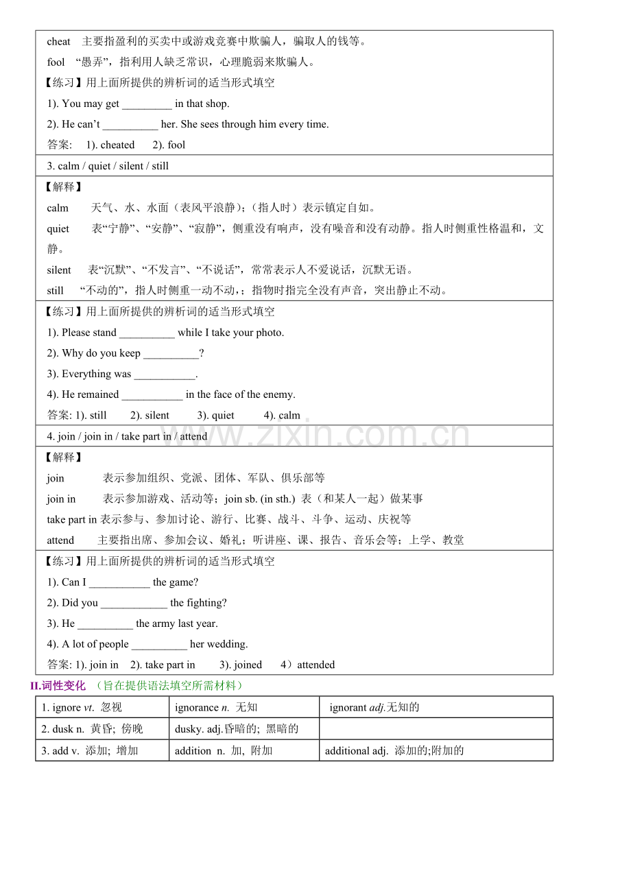 Ⅱ.词性变化 (旨在提供语法填空所需材料)