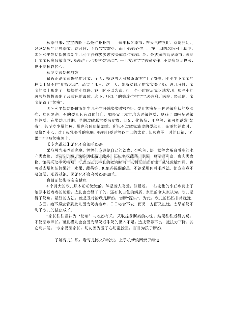 秋季到来,宝宝的脸上总是红扑扑的……每年秋冬季节,在天气转换时,总是婴幼儿好发奶癣的高峰季节。这时候,不仅宝宝难受,而且妈妈心焦……在上周的名医网上聊中,国际和平妇幼保健院新生儿科主任施婴婴教授提醒诸位妈妈,最近是奶癣的高发季节,既要让宝宝远离致敏食物,妈妈自己也要学会“忌口”。一旦发现宝宝奶癣发作,不要病急乱投医,也不要掉以轻心。