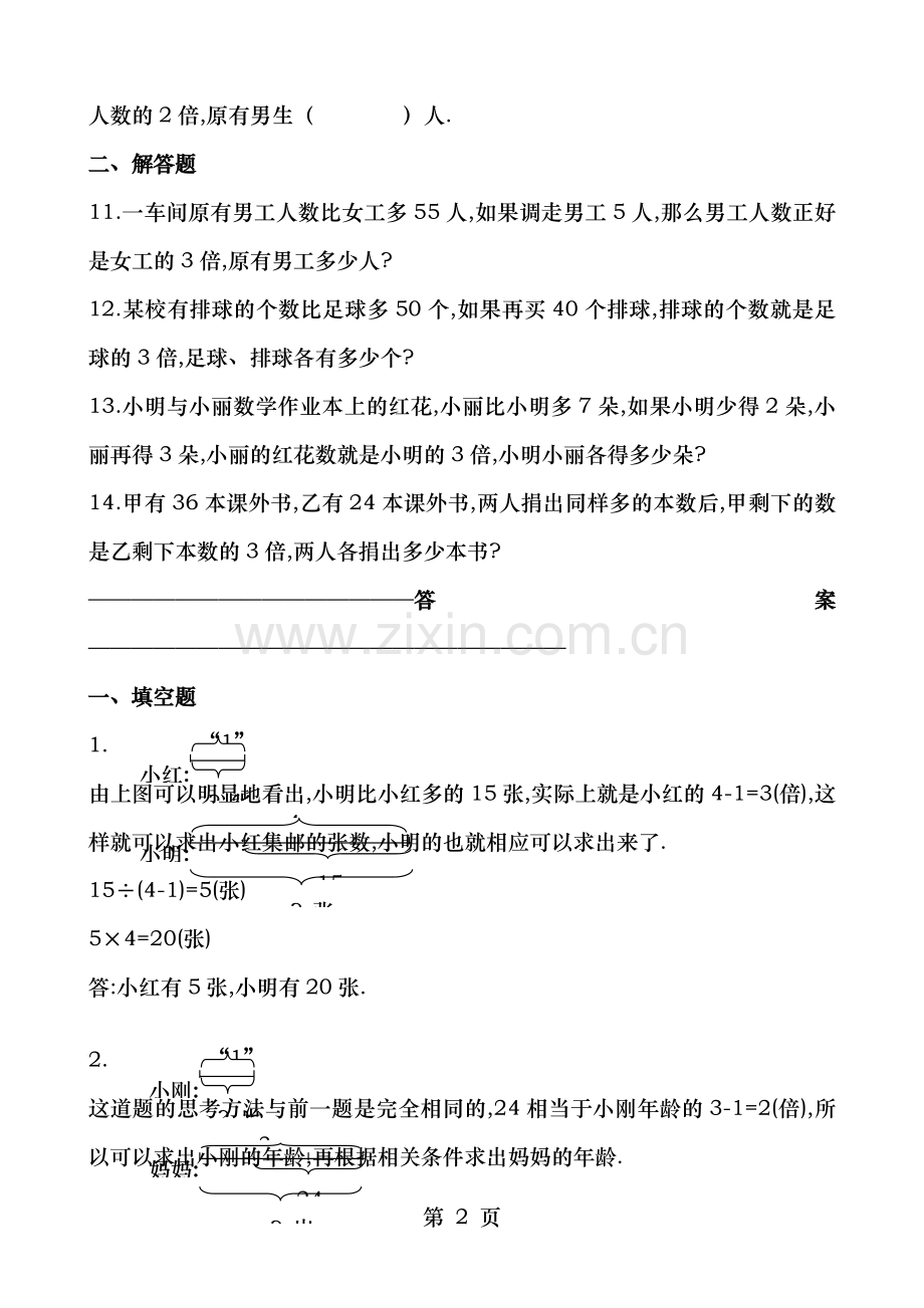 这道题的思考方法与前一题是完全相同的,24相当于小刚年龄的3-1=2(倍),所以可以求出小刚的年龄,再根据相关条件求出妈妈的年龄.