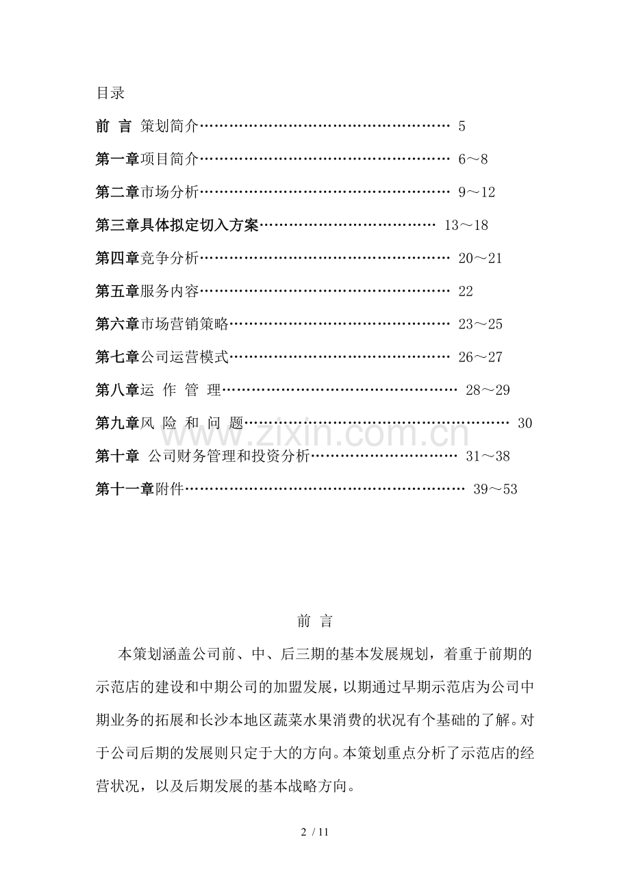 期业务的拓展和长沙本地区蔬菜水果消费的状况有个基础的了解。对于公司后期的发展则只定于大的方向。本策划重点分析了示范店的经营状况,以及后期发展的基本战略方向。
