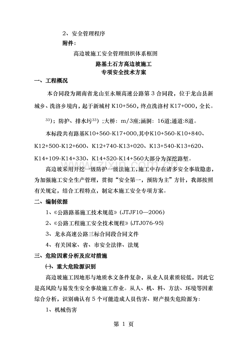 附:1、路基土石方高边坡工程施工安全管理组织体系框图
