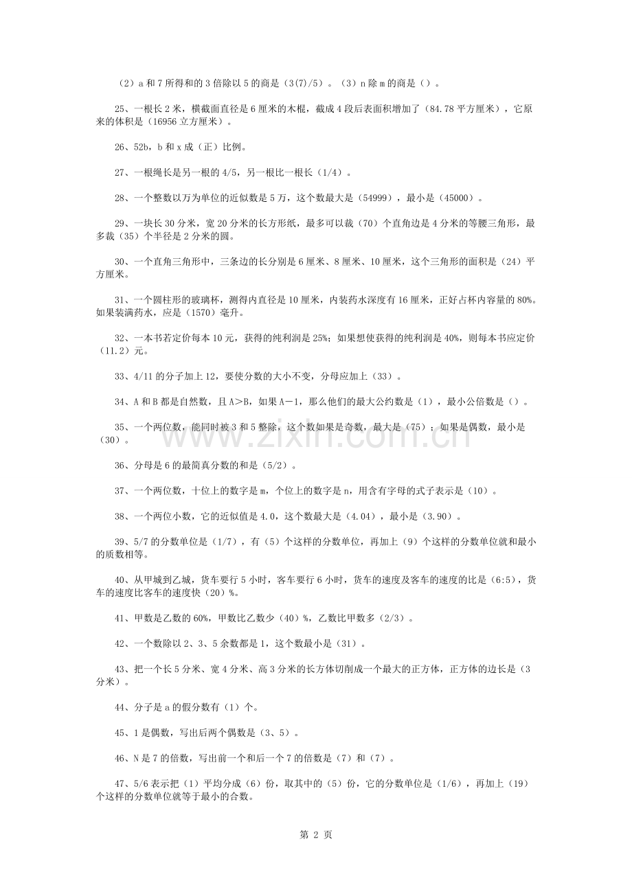 敏逊教育小升初数学易错题精选(填空题)