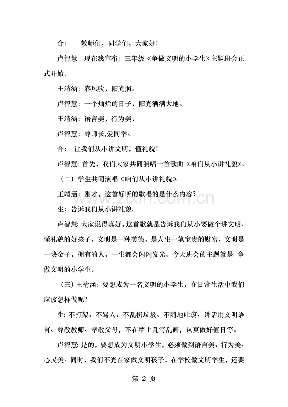 (三)主持人:要想成为一名文明的小学生,在日常生活中我们应该怎样做呢?