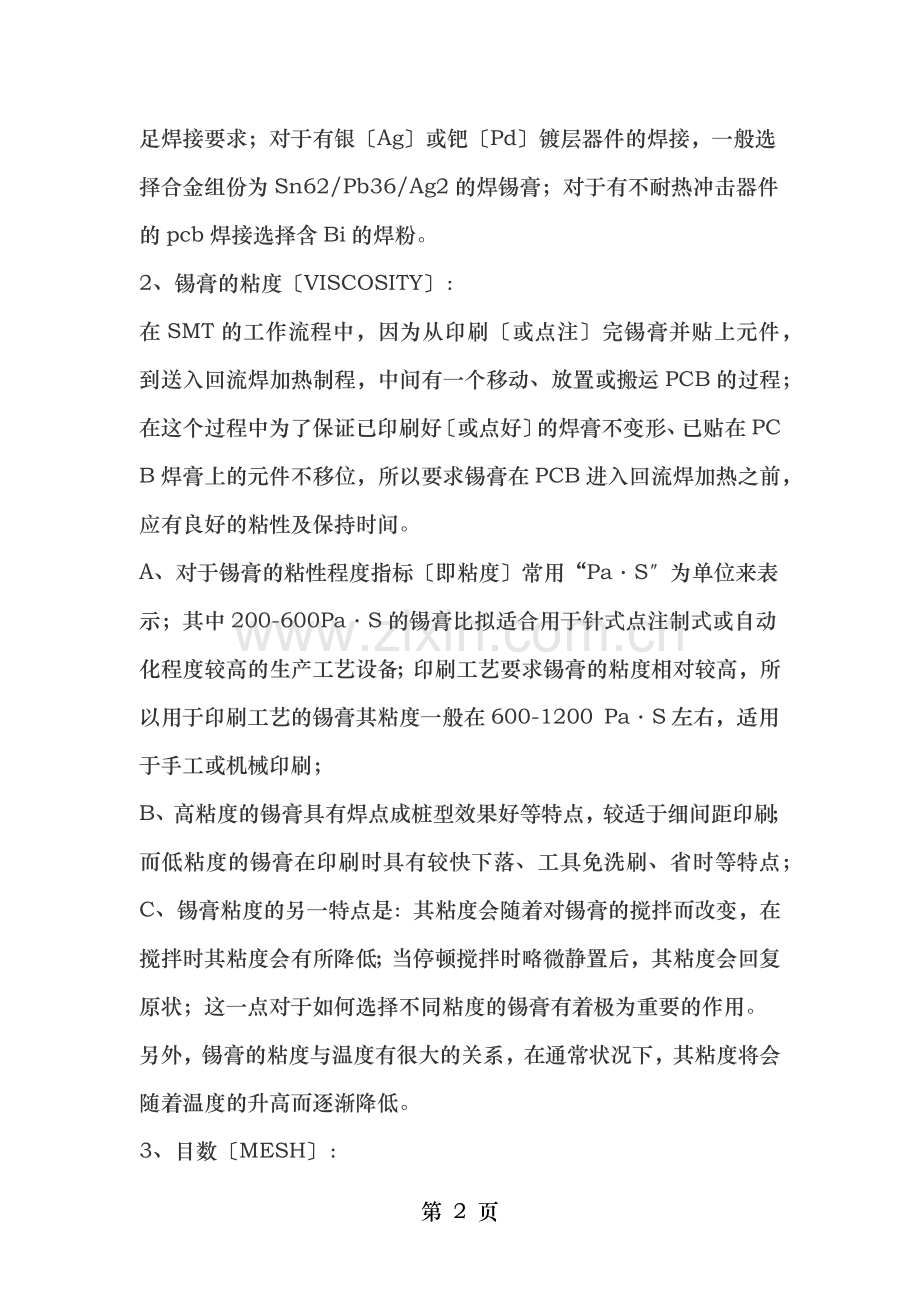 A、对于锡膏的粘性程度指标〔即粘度〕常用“Pa·S〞为单位来表示;其中200-600Pa·S的锡膏比拟适合用于针式点注制式或自动化程度较高的生产工艺设备;印刷工艺要求锡膏的粘度相对较高,所以用于印刷工艺的锡膏其粘度一般在600-1200 Pa·S左右,适用于手工或机械印刷;