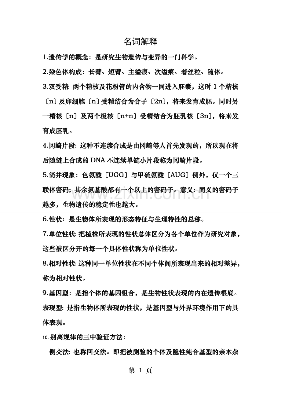 1.遗传学的概念:是研究生物遗传与变异的一门科学。