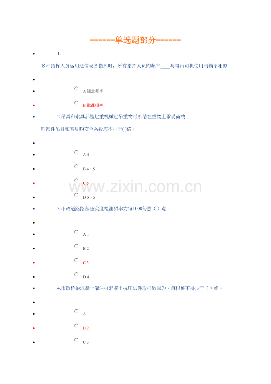 · 1. 多种指挥人员运用通信设备指挥时,所有指挥人员旳频率____与塔吊司机使用旳频率相似