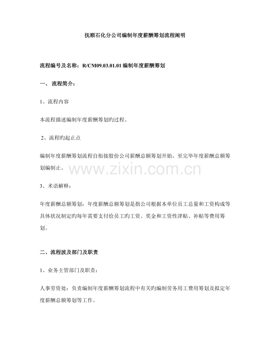 抚顺石化分公司编制年度薪酬筹划流程阐明