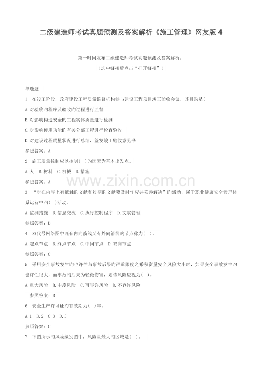 二级建造师考试真题预测及答案解析《施工管理》网友版4