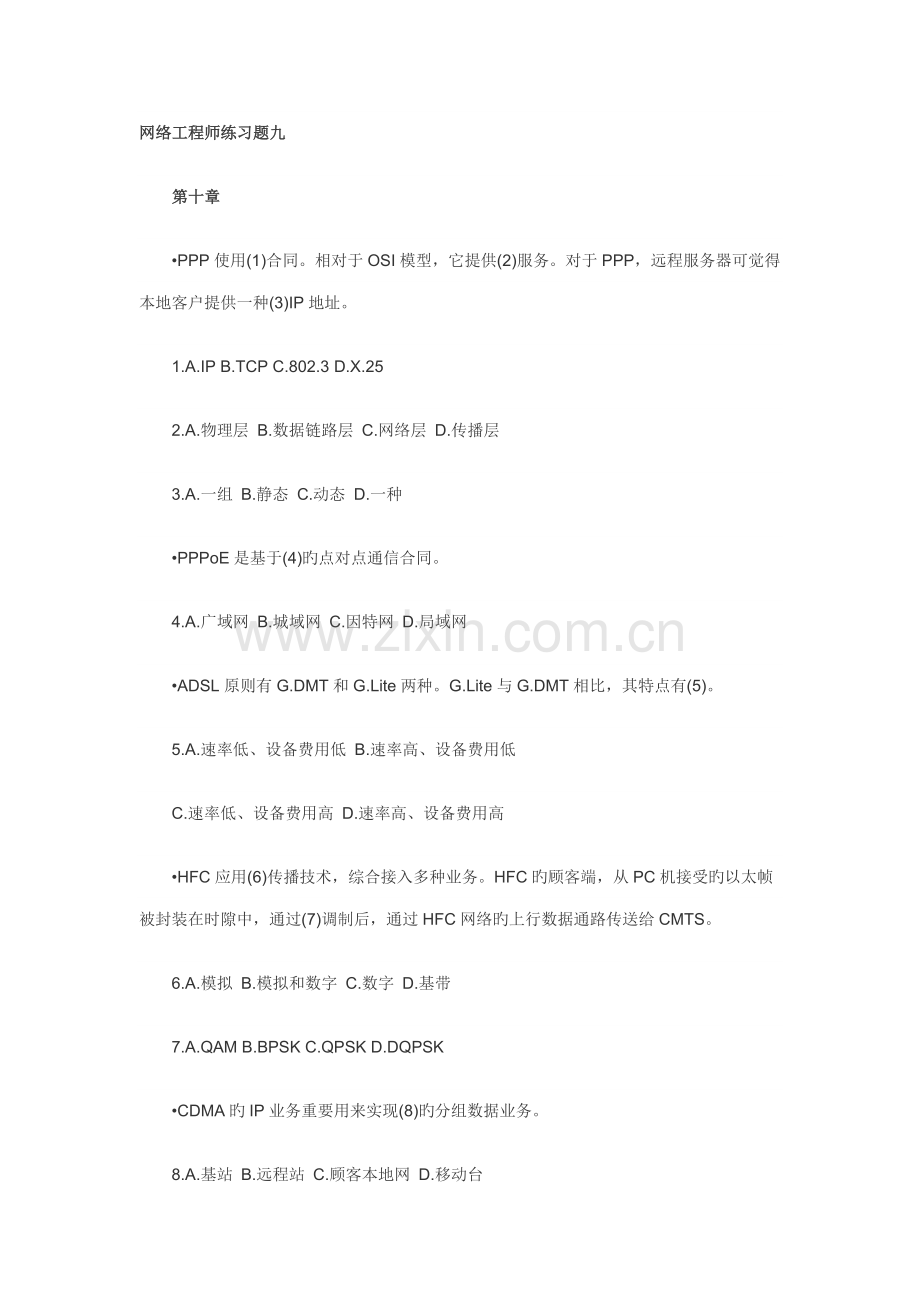 •PPP使用(1)合同。相对于OSI模型,它提供(2)服务。对于PPP,远程服务器可觉得本地客户提供一种(3)IP地址。