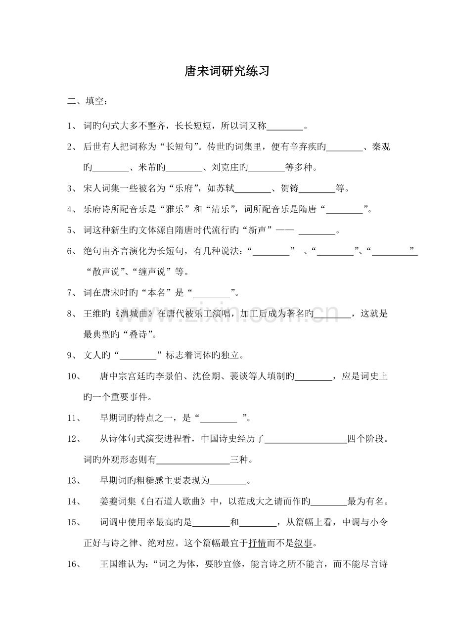 唐宋词研究练习