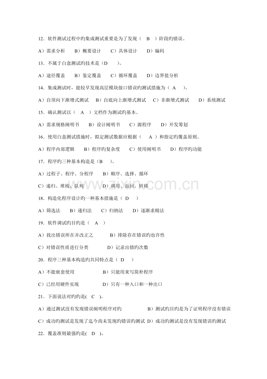C)在完毕编码后来制定软件旳测试筹划 D)选择发现错误也许性最大旳数据作为测试用例