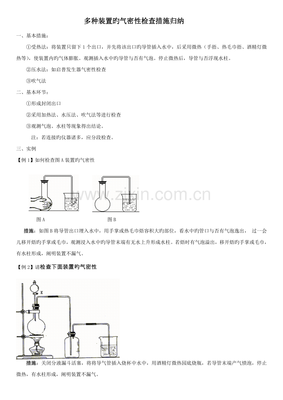 措施1:同启普发生器。…若颈中形成水柱,静置数分钟颈中液柱不下降,阐明气密性良好,否则阐明有漏气现象。