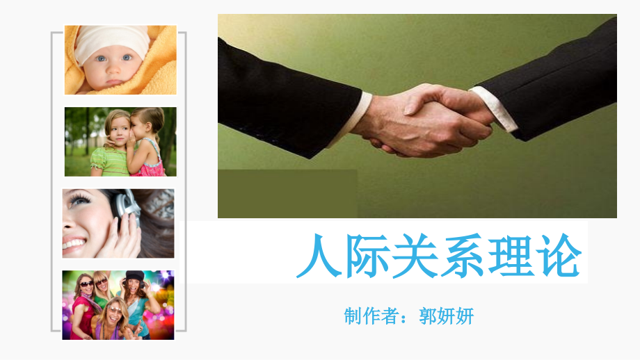 人际关系理论,制作者:郭妍妍,人际关系理论,人际关系概述,人际吸引,人际关系技巧,人际关系理论,人际关系概述,人际吸引,人际关系技巧,人际关系概述,人际关系理论,人际吸引,人际关系技巧,人际关系概述,人际关系理论,人际吸引,人际关系技巧,人际关系的重要性,“人际剥夺”实验,美国心理学家沙赫特曾做过一个“人际剥夺”实验:他以每小时,15,美元的高薪招募应试者到他创设的一个房间里去居住,居住的时间越长,得到的报酬越多,这个小房间完全与外界隔绝,没有报纸,没有电话,不准写信,听不到外界的声音,当然更找不到人聊天。每天只供应饮食等必需品。先后有,5,人应聘参加了这个实验。,图片来自网络,与本主题无关,特此说明!,人际关系概述,人际关系理论,人际吸引,人际关系技巧,人际关系的重要性,实验的结果是:,1,个人在小房间里待了,2,个小时,,3,个人待了,2,天,一个人待了,8,天。这个待了,8,天的人出来以后说:“如果再让我在里面待,1,分钟,我就要疯了。”这个实验充分地验证了作为社会性的人,离不开与别人的交往。就像吃饭、睡觉一样,人际交往也是人的一种必然需要。良好的人际关系是人生存和发展的基础和条件。,图片来自网络,与本主题无关,特此说明!,人际关系概述,人际关系理论,人际吸引,人际关系技巧,一、什么是人际关系,同事关系,朋友关系,家庭亲属关系,雇佣关系,战友关系,领导与被领导关系,日常社会交往关系,师生关系,同学关系,人际关系范畴,人际关系也称人际交往,是指人与人之间通过直接交往形成起来的较为稳定的倾向性情感联系。这种联系是交往所产生的情感的积淀,是人与人之间相对稳定的情感纽带。关系一经形成,就会作为进一步相互作用的背景和导向系统,对后续的交往形成定向性影响。,人际关系概述,人际关系理论,人际吸引,人际关系技巧,人际关系的形成经常受到各方面特征的制约,并伴随着一定的心理体验与心理反应。人的心理过程是由“知”“情”“意”,3,个部分组成的,即认知、情绪、意志行为,因此人际关系的心理结构包括,人际认知、人际情感,和,人际行为,这样,3,个内在联系的具体层面。,二、人际关系的心理构成,人际关系概述,人际关系理论,人际吸引,人际关系技巧,三、人际关系建立和发展的阶段,人际关系的建立和发展一般来说经过定向、探索、情感交流和稳定交往,4,个阶段。,1,、定向阶段:,主要是对交往对象的注意、选择及初步沟通等方面的心理活动。对于注意到的对象,人们进行初步的沟通,进行表层自我表露。,2,、探索阶段:,如果在定向阶段双方有好感,产生继续交往的兴趣,那么就会进一步自我表露。,人际关系概述,人际关系理论,人际吸引,人际关系技巧,三、人际关系建立和发展的阶段,3,、情感交流阶段:,如果在情感探索阶段谈得来,建立了基本的信任感,那么就会发展到情感交流阶段。此时,双方关系超越了正式规范的限制,比较轻松自在,有不同意见也能坦然相告。,4,、稳定交往阶段:,情感交流能够顺利进行的话,人们就可以进入更加密切的阶段。彼此在心理相容性方面进一步拓展,允许对方进入自己的私密性领域,自我暴露广泛而深刻。,人际关系理论,人际关系概述,人际吸引,人际关系技巧,人际关系概述,人际关系理论,人际吸引,人际关系技巧,人际关系概述,人际关系理论,人际吸引,人际关系技巧,人际关系的三维理论,1,社会交换理论,2,公平理论,3,人际关系理论,人际关系概述,人际关系理论,人际吸引,人际关系技巧,人际关系的三维理论,美国心理学家舒茨(,W.C.Schuts,,,1958,)提出了人际关系的三维理论。他认为每个人都具有与别人建立人际关系的愿望和需要。只是有些人表现的明显些,有些人变现的不明显。这些需要大致可以分为,3,类:,包容需要、控制的需要、情感的需要。,每一类需要都可以转化为动机,产生一定的行为倾向,建立相应的人际关系。,人际关系概述,人际关系理论,人际吸引,人际关系技巧,人际关系的三维理论,1,、包容的需要:,它是指个体想要与别人接触、交往、相容的需要。基于这种动机所产生的人际行为是交往、沟通、容纳、归属、参与等,这种人倾向于在所有时刻与人在一起,要求归属于某个组织;与此相反的人际行为是孤立、退缩、疏远、忽视等。,2,、支配的需要:,它是指个体控制他人或被他人控制的需要,亦即个体在权力问题上与他人建立并维持满意关系的需求。基于这种动机的人际行为是运用权力、权威去影响、控制、支配、领导他人;与此动机相反的人际行为是受人支配、追随他人,或者抗拒权威、忽视秩序。,人际关系概述,人际关系理论,人际吸引,人际关系技巧,人际关系的三维理论,3,、情感的需求:,它是指个体爱他人或被他人所爱的需求,也就是个体在与他人的关系中建立并维持亲密的情绪联系的需求。由此动机形成的人际行为是喜爱、亲密、同情、友好、热心、照顾等,相反的则是憎恨、厌恶、冷淡、疏远等。,人际关系概述,人际关系理论,人际吸引,人际关系技巧,人际关系的三维理论,主动,被动,包容,主动与他人交往,积极参与社会生活,退缩、孤单、期待他人接待自己,支配,喜欢控制他人,能运用权力,期待他人引导,愿意追随他人,情感,对他人喜爱、友善、同情、亲密,对他人显得冷淡,负性情绪较重,但期待他人对自己亲密,对于这三种需要,人们有