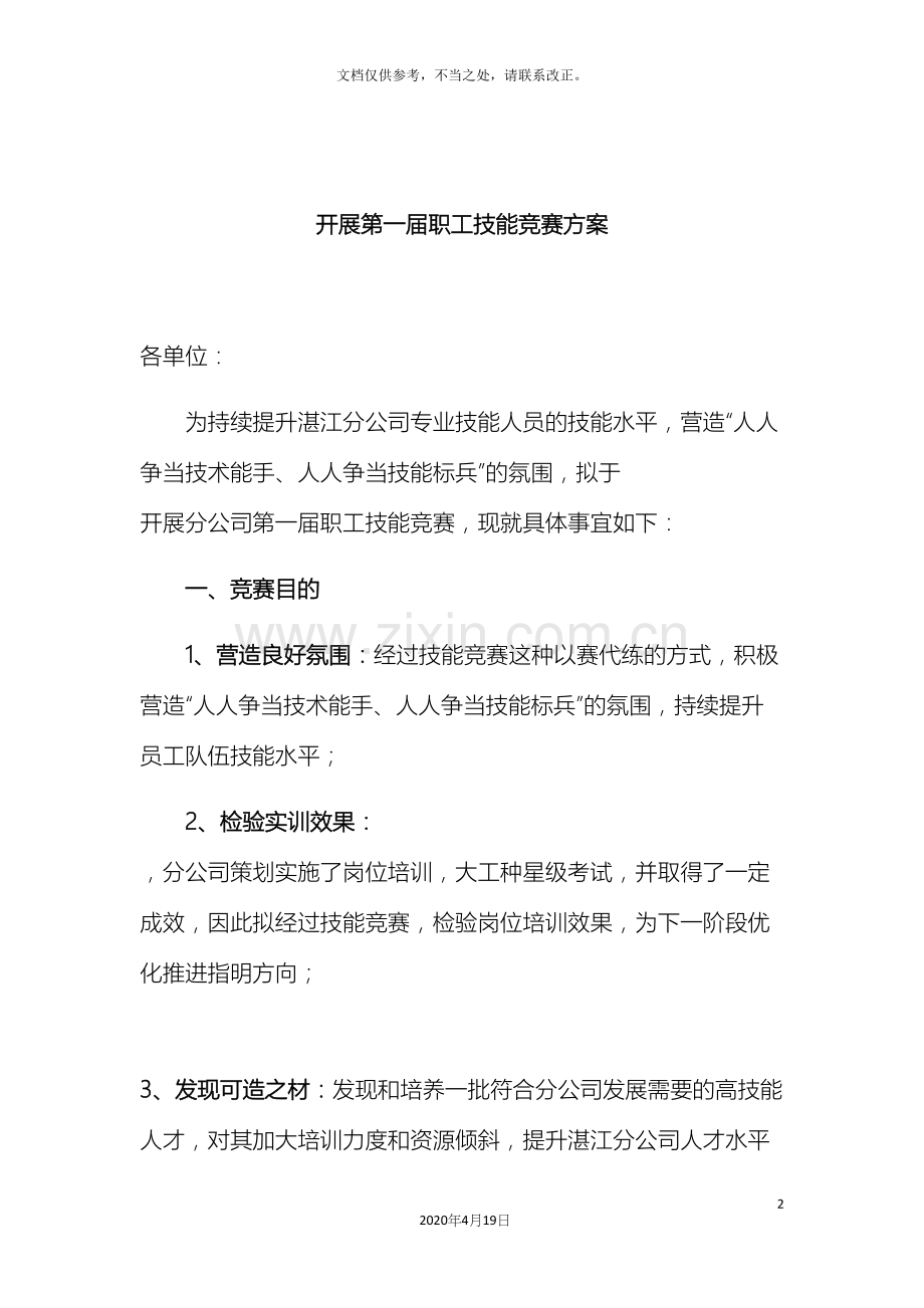 为持续提升湛江分公司专业技能人员的技能水平,营造“人人争当技术能手、人人争当技能标兵”的氛围,拟于 开展分公司第一届职工技能竞赛,现就具体事宜如下: