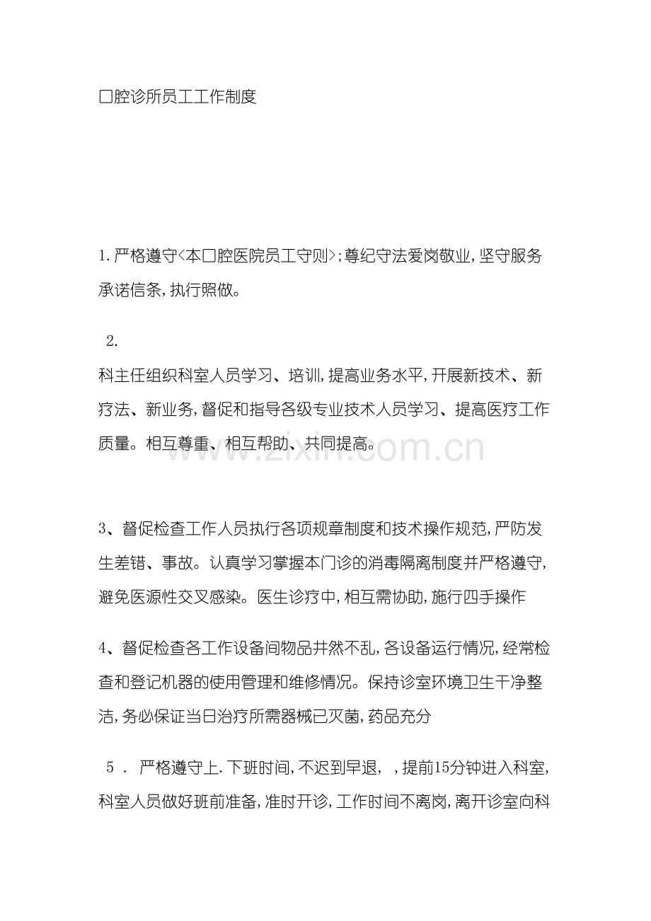 1.严格遵守<本口腔医院员工守则>;尊纪守法爱岗敬业,坚守服务承诺信条,执行照做。