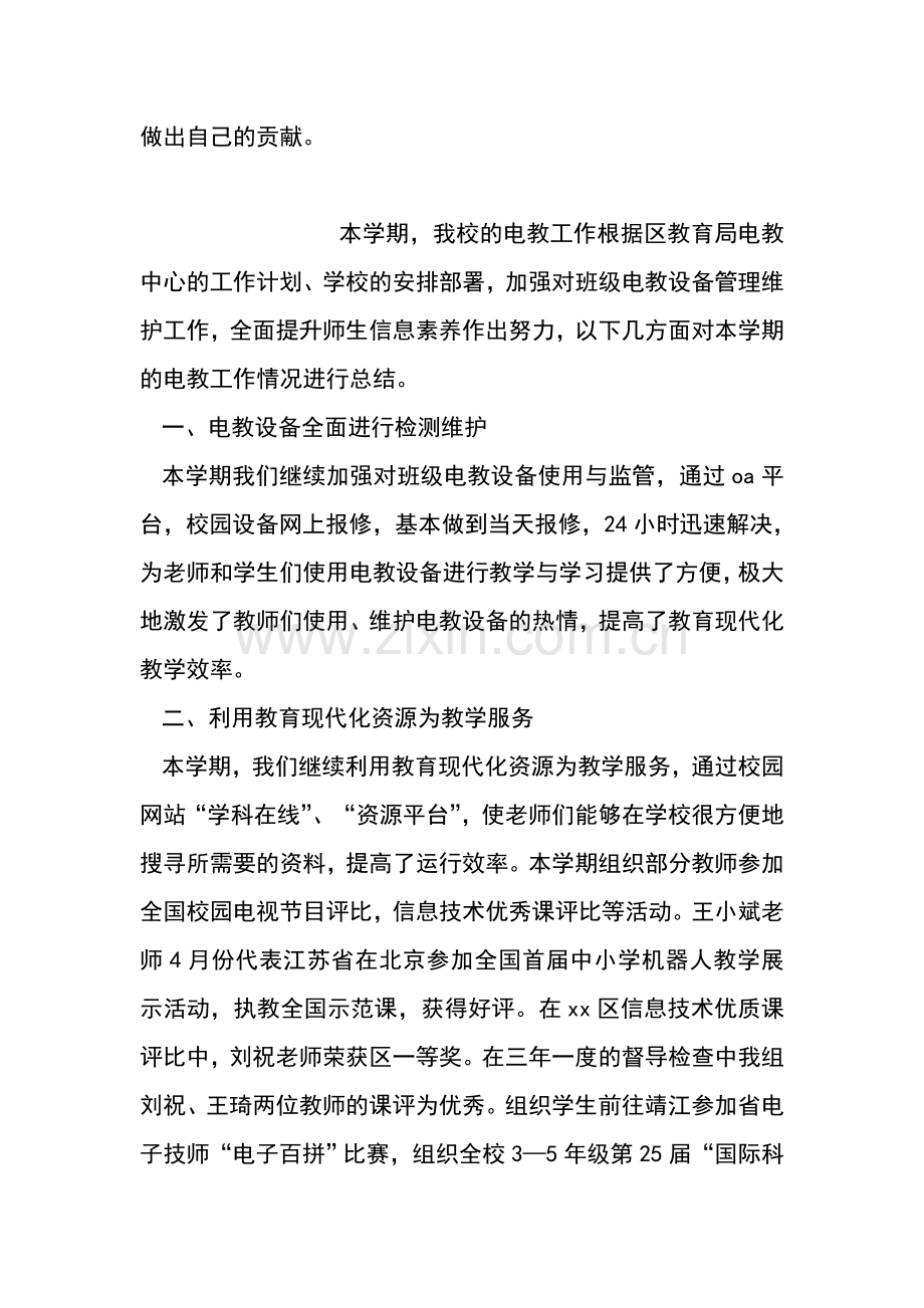 本学期,我校的电教工作根据区教育局电教中心的工作计划、学校的安排部署,加强对班级电教设备管理维护工作,全面提升师生信息素养作出努力,以下几方面对本学期的电教工作情况进行总结。