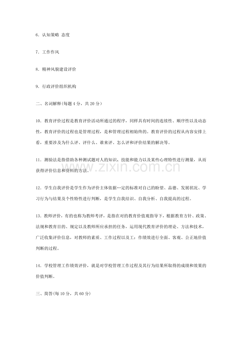 2.教育评价:P3教育评价是评价者根据一定社会拟定的教育目的和价值标准,对教育活动满足社会与受教育者需要的限度作出判断的活动。
