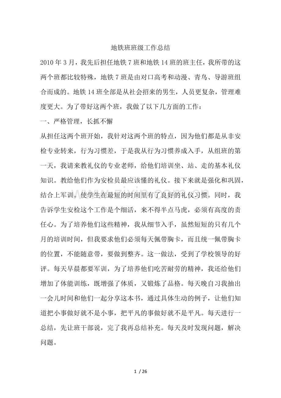 2010年3月,我先后担任地铁7班和地铁14班的班主任,我所带的这两个班都比较特殊,地铁7班是由对口高考和动漫、青鸟、导游班组合而成的。地铁14班全部是从社会招来的男生,人员更复杂,管理难度更大。为了带好这两个班,我做了以下几方面的工作: