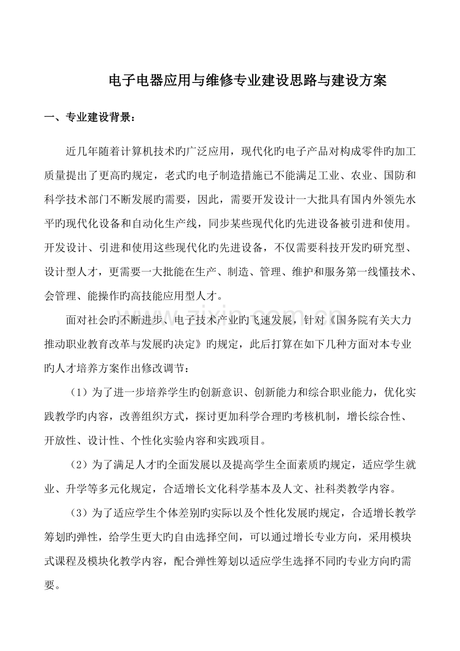 通过改革与建设,把应用电子技术专业建设成为具有现代教学理念,高职特色旳,体现创新精神旳示范性课程。